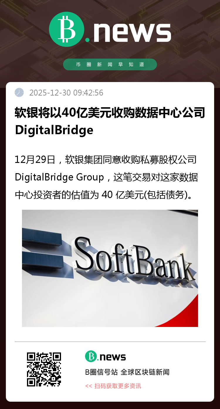 交易目前已完成协议签署,预计将于2026年下半年完成最终交割,具体进程将取决于相关监管机构的审查与批准。双方表示,此次合作将为DigitalBridge提供更稳定的资本支持,同时助力软银在全球数字化浪潮中深化其基础设施布局。(来源:BLOCKBEATS)
