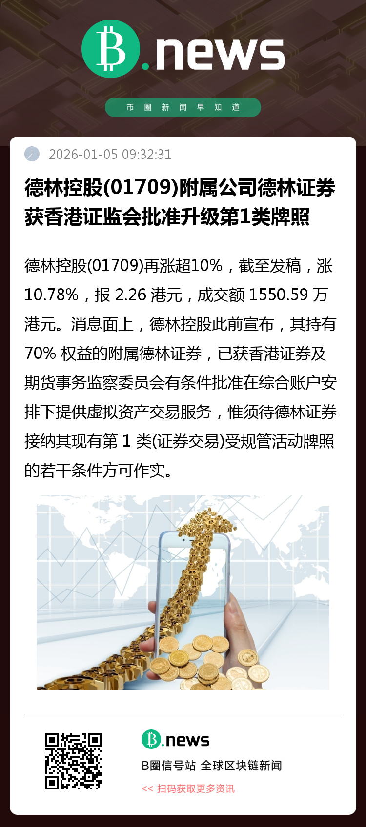 综合来看,德林控股近期在虚拟资产交易服务牌照获取与比特币挖矿业务上的双重进展,成为推动其股价连续走强的重要动力,反映出市场对其在数字金融领域布局的认可与期待。(来源:ME)