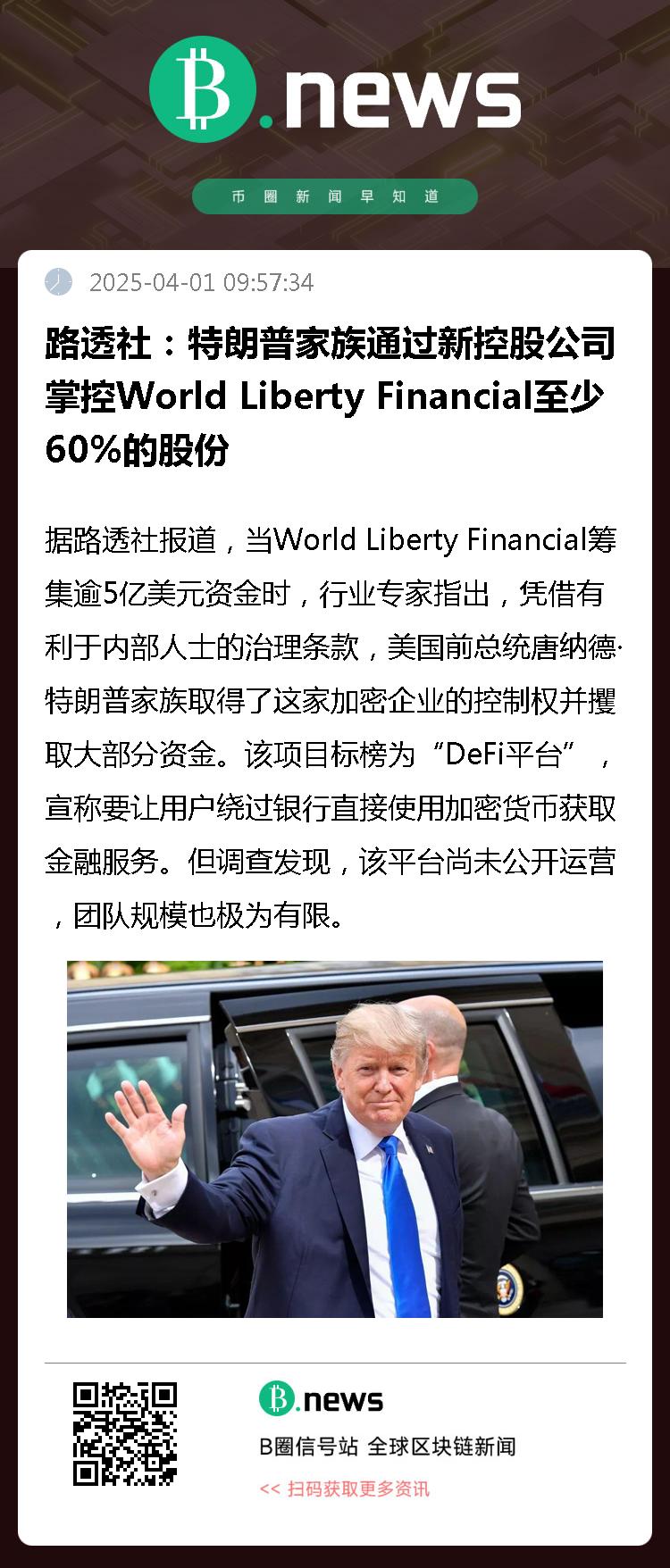 据路透社报道,当World Liberty Financial筹集逾5亿美元资金时,行业专家指出,凭借有利于内部人士的治理条款,美国前总统唐纳德·特朗普家族取得了这家加密企业的控制权并攫取大部分资金。该项目标榜为“DeFi平台”,宣称要让用户绕过银行直接使用加密货币获取金融服务。但调查发现,该平台尚未公开运营,团队规模也极为有限。