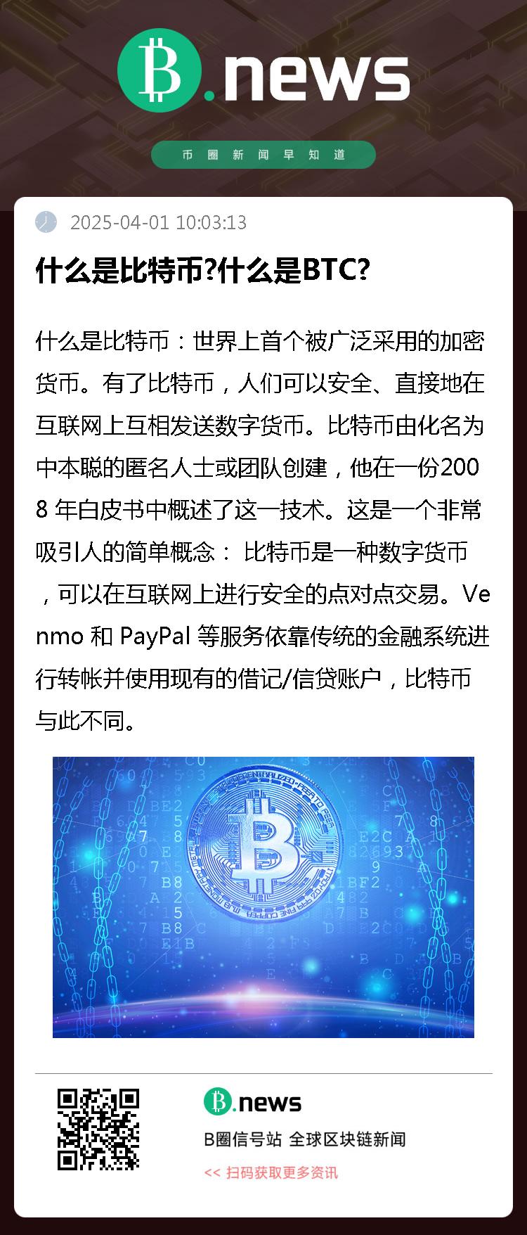 什么是比特币:世界上首个被广泛采用的加密货币。有了比特币,人们可以安全、直接地在互联网上互相发送数字货币。