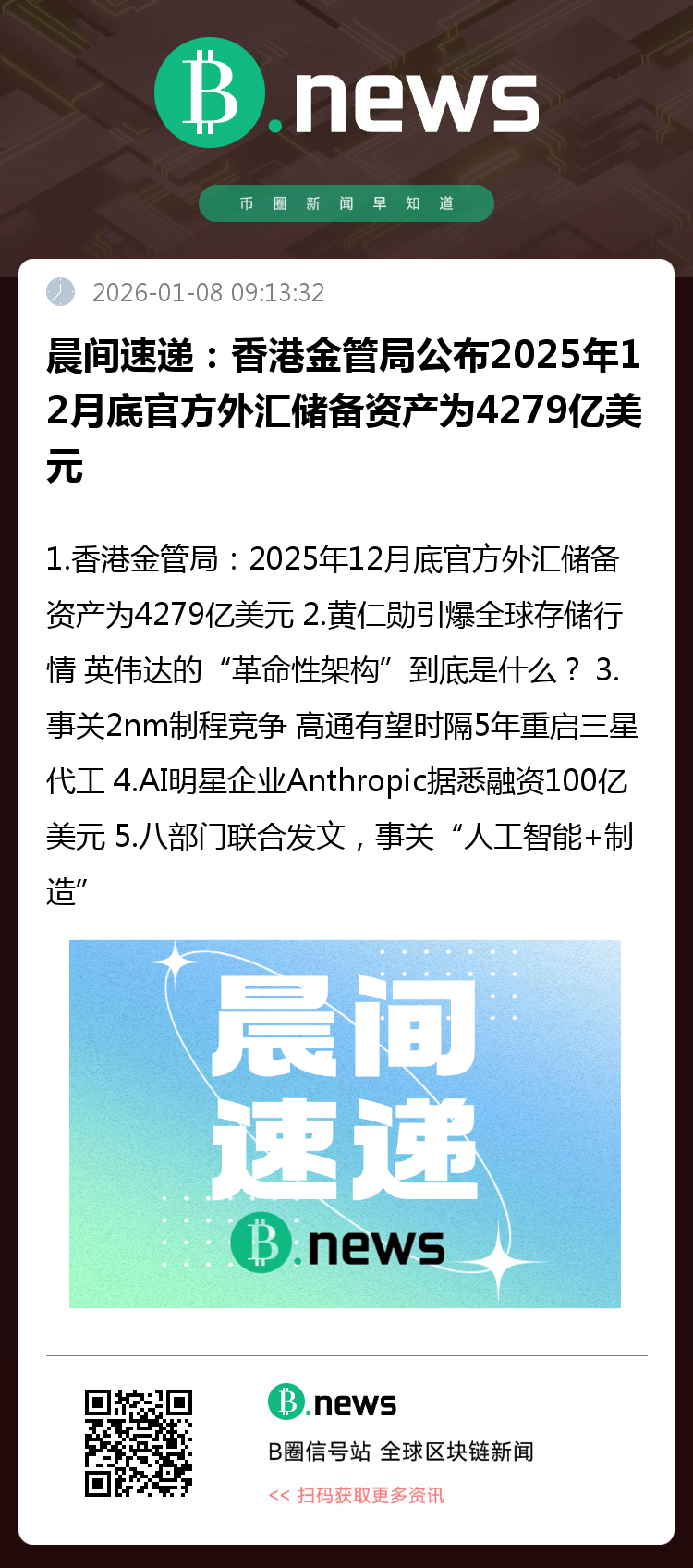 香港金管局:2025年12月底官方外汇储备资产为4279亿美元