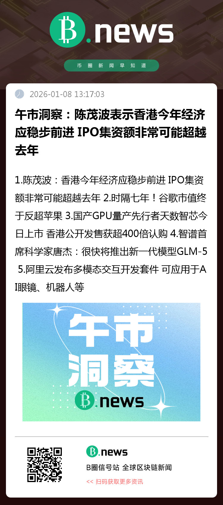 据香港经济日报1月8日报道,香港财政司司长陈茂波表示,目前政府研判香港今年经济应稳步前进,将于下月公布的财政预算案公布具体增长测算。他认为,香港金融市场畅旺的效果,需时传递至更广泛行业。他表示,近期零售及餐饮等回稳,甚至有轻微增长,业界需要转型创新,若有政策协助期望亦可提出。陈茂波预期,今年香港首公开招股(IPO)市场稳中有进,审慎乐观,IPO集资额非常可能超越去年。