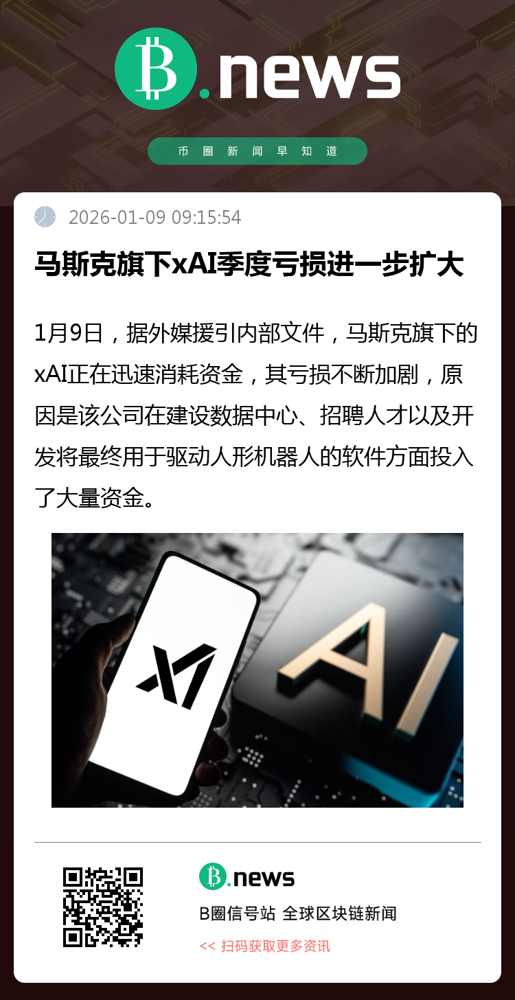 1月9日,据外媒援引内部文件披露,埃隆·马斯克旗下的人工智能公司xAI正面临资金快速消耗与亏损扩大的局面。该公司在数据中心建设、人才招聘以及开发最终用于驱动机器人的软件等方面投入巨大,导致其财务压力持续增加。