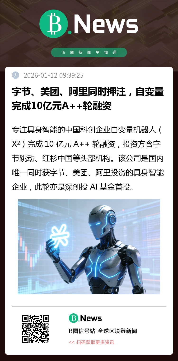 专注于具身智能的中国高科技创业公司自变量机器人(X Square Robot,简称 X²)宣布已完成 10 亿元 A++轮融资,本轮融资由字节跳动、红杉中国、北京信息产业发展基金、深创投、南山战新投、锡创投等顶级投资机构及多元地方平台联合投资。