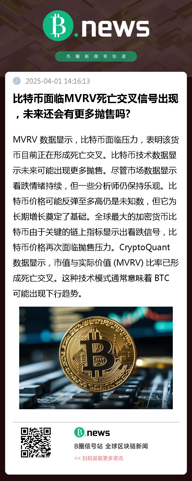 MVRV 死亡十字架为比特币敲响警钟
