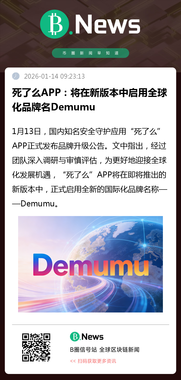 此次更名不仅是品牌形象的焕新,更是其全球化战略迈出的关键一步,展现了Demumu致力于连接不同文化、守护每一个人安全生活的坚定决心。(来源:PANews)