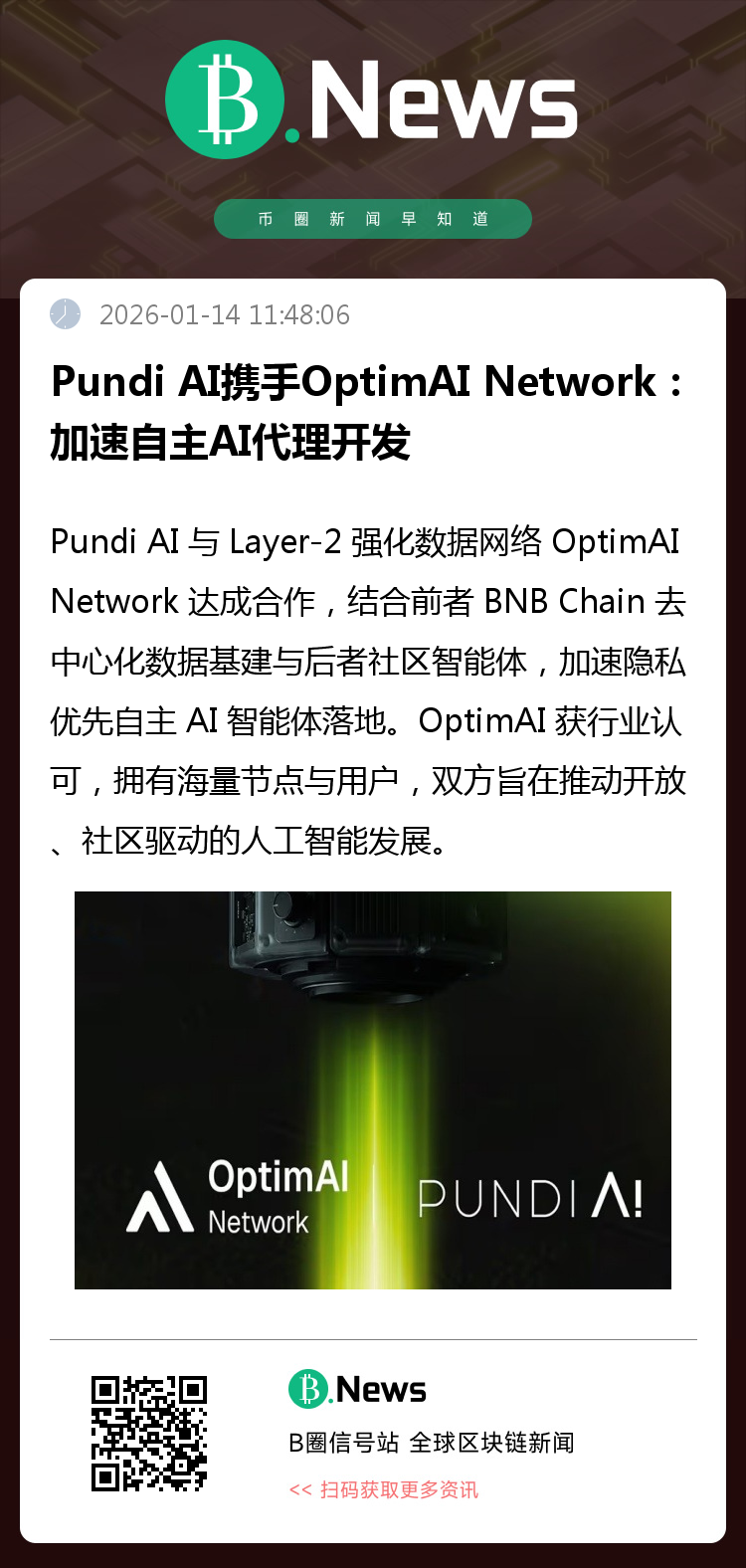 此次合作体现了双方的共同理念:人工智能应当开放、社区驱动,并由用户所有。通过将 BNB 链上的去中心化数据基础设施与强化学习驱动的智能体系统相结合,Pundi AI 和 OptimAI Network 正在为透明、可扩展且符合人类激励机制的自主人工智能奠定基础。