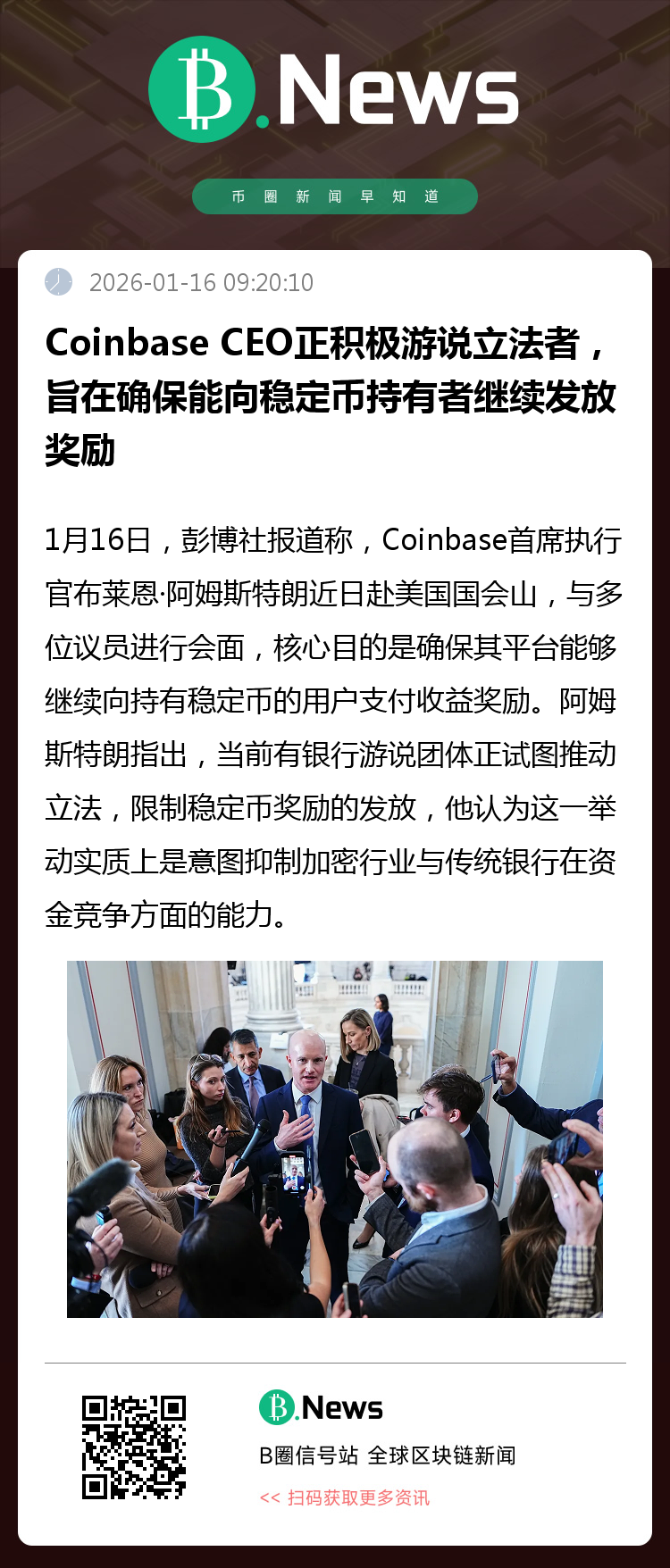 此次会面背景复杂,涉及此前一项备受关注的数字资产市场结构法案草案。该草案由参议院相关委员会筹备审议,其中包含妥协条款,虽禁止了类似存款收益的支付模式,却仍允许“交易奖励”等其他形式的回报。阿姆斯特朗曾对此草案表示反对,随后委员会主席蒂姆·斯科特宣布推迟对该法案的进一步行动。然而,立法进程并未停止,多位参议员预计将就一项全面禁止稳定币奖励的修正案进行投票,目前最终结果尚不确定。