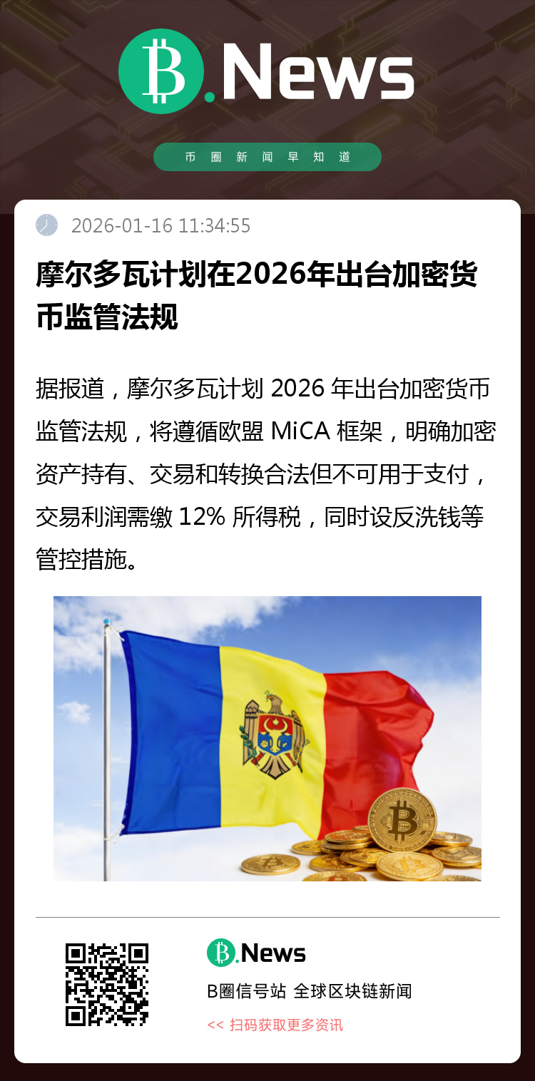 据Cryptopolitan报道,摩尔多瓦财政部长Andrian Gavriliță宣布,该国计划在2026年出台加密货币监管法规。作为欧盟候选成员国,摩尔多瓦需遵循欧盟的加密资产市场(MiCA)监管框架。新法规将明确公民持有、交易和转换加密资产的合法性,并授权特定机构开展相关业务。但加密货币将不被允许用于商品或服务支付。在税收方面,虽然持有加密货币不会被征税,但由此产生的交易利润需缴纳12%的所得税。法规还将包含严格的防洗钱及安全风险管控措施。Andrian Gavriliță强调,政府的目标是在合法化这一领域的同时,防止加密货币被用于非法融资和洗钱活动。(来源:Cryptopolitan)