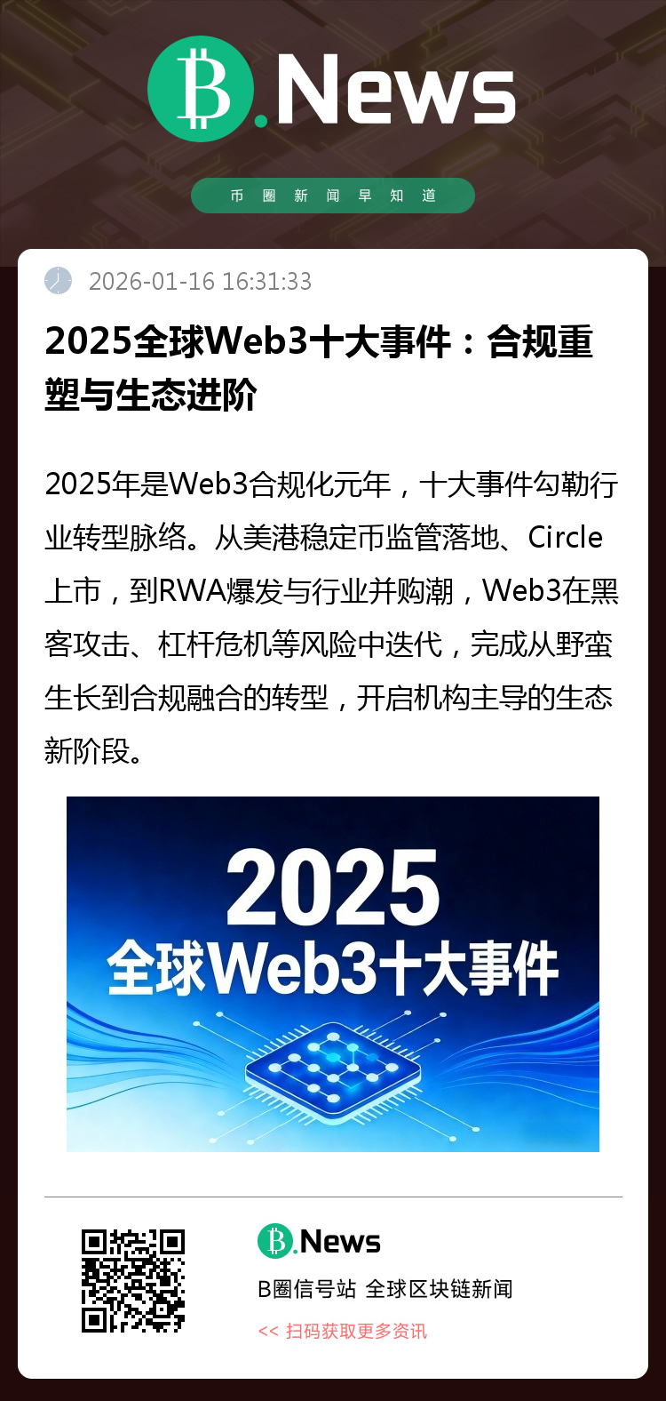 2025年,Web3迈入合规化元年,监管框架落地与生态迭代形成双向共振。从史上最大加密黑客攻击到传统金融资产代币化爆发,从各国监管政策落地到行业并购整合,Web3在风险与机遇中完成格局重塑,正式告别野蛮生长,迈向与传统金融深度融合的成熟阶段。本文盘点年度十大核心事件,解码行业转型逻辑与未来走向。
