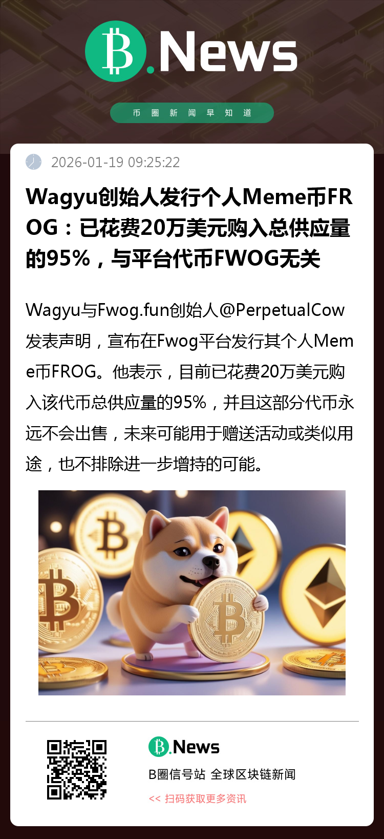 他强调自己未在 Fwog 上发行过其他代币,并认为对平台上其他社区代币保持中立最为合适。但他也担心,若自己发行官方代币,可能会抑制周边自然形成的社区生态。因此,他计划投入资金,支持在 Fwog 上发行的 Cow 系列代币。