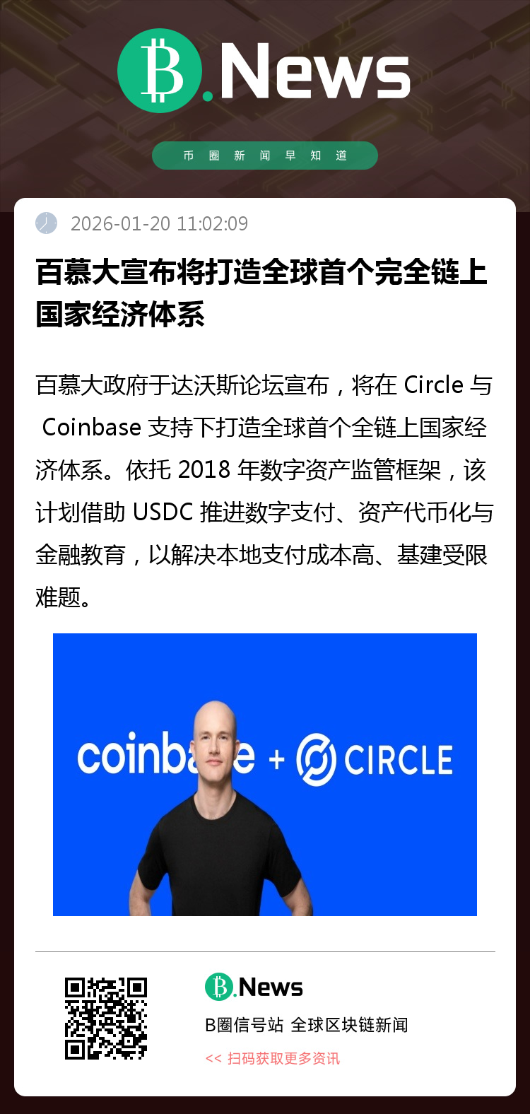 据Circle官网,百慕大政府在达沃斯世界经济论坛上宣布,计划在Circle与Coinbase支持下建设全球首个完全链上的国家经济体系。该计划将通过稳定币USDC推广数字支付、资产代币化与金融教育,缓解本地支付成本高、基础设施受限问题。Circle与Coinbase将为政府、银行、商户等提供区块链基础设施与工具。该倡议基于百慕大2018年出台的数字资产监管框架。(来源:Circle官网)