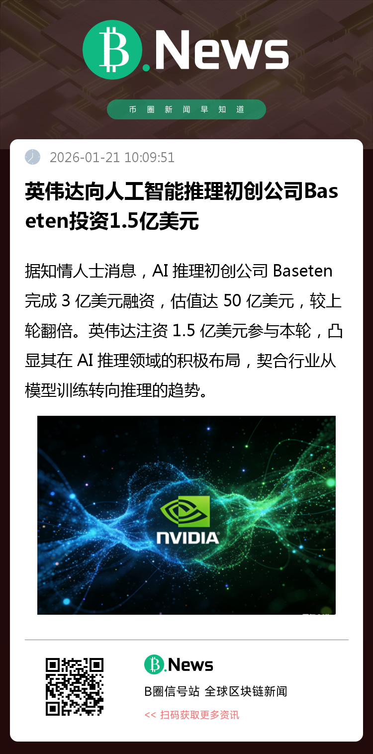 据华尔街日报援引知情人士透露,专注于人工智能推理的初创公司Baseten已完成3亿美元融资,估值达到50亿美元,几乎是上一轮估值的两倍。本轮融资由风险投资公司IVP和Alphabet独立增长基金CapitalG领投,芯片巨头英伟达也参与投资,并作为交易的一部分向Baseten注资1.5亿美元。此交易凸显了英伟达在人工智能推理领域对初创公司的积极布局。随着行业关注点从训练模型转向大规模运行和推理(即AI模型根据输入生成输出),英伟达正加大对相关初创公司的投资力度,同时继续向自身AI芯片客户投资。(来源:金十数据)