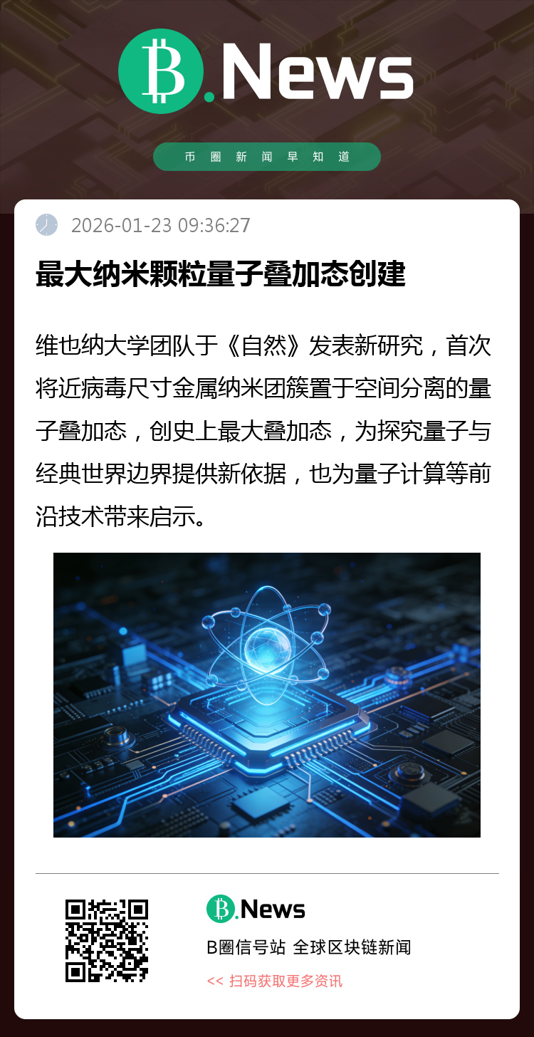 奥地利维也纳大学研究团队在新一期《自然》杂志发表研究,首次将尺寸接近病毒的金属纳米团簇置于空间分离明显的量子叠加态中,创造了有史以来最大的叠加态。这一成果为探究量子世界与经典世界的边界提供了新依据,也对量子计算、量子精密测量等前沿技术具有启示意义。(来源:财联社)