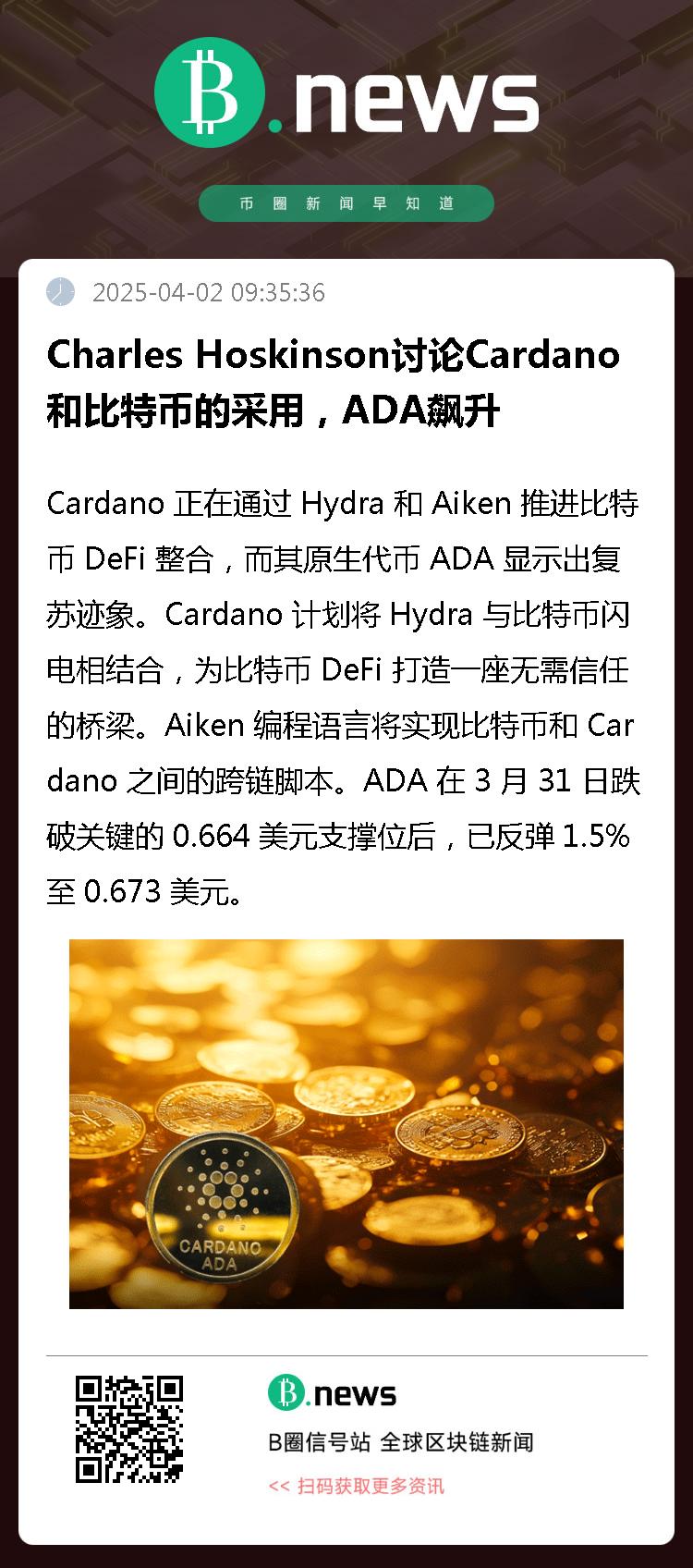 Cardano 正在通过 Hydra 和 Aiken 推进比特币 DeFi 整合,而其原生代币 ADA 显示出复苏迹象。