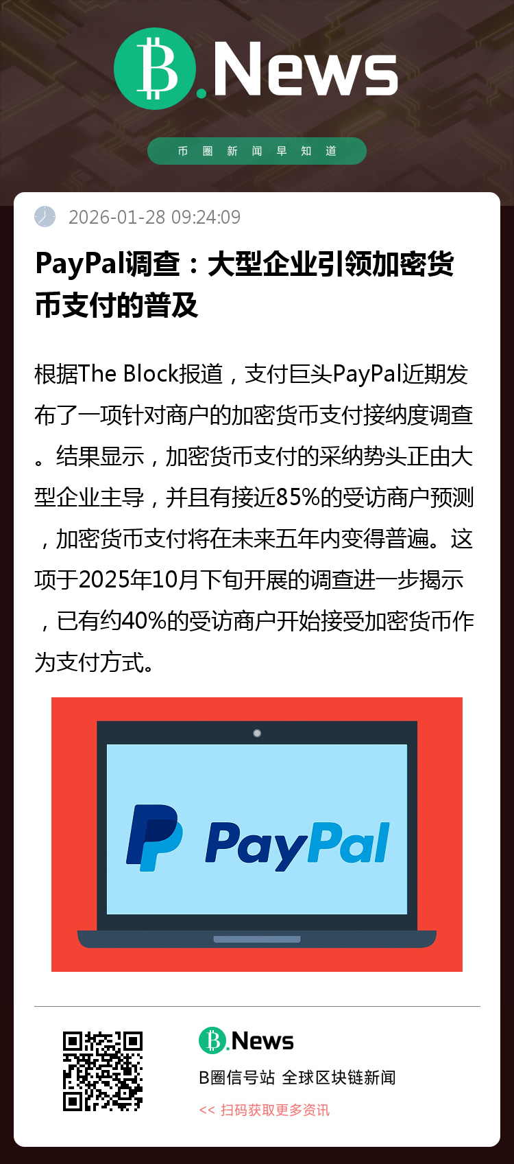 PayPal加密业务负责人在评论调查结果时指出,数据清晰地表明,加密货币支付已逐渐脱离早期实验阶段,开始进入日常商业应用场景。这一转变主要受到消费者对更快、更灵活支付方式需求的驱动,尤其是跨境交易和数字化原生消费场景中,加密货币展现出独特的优势。