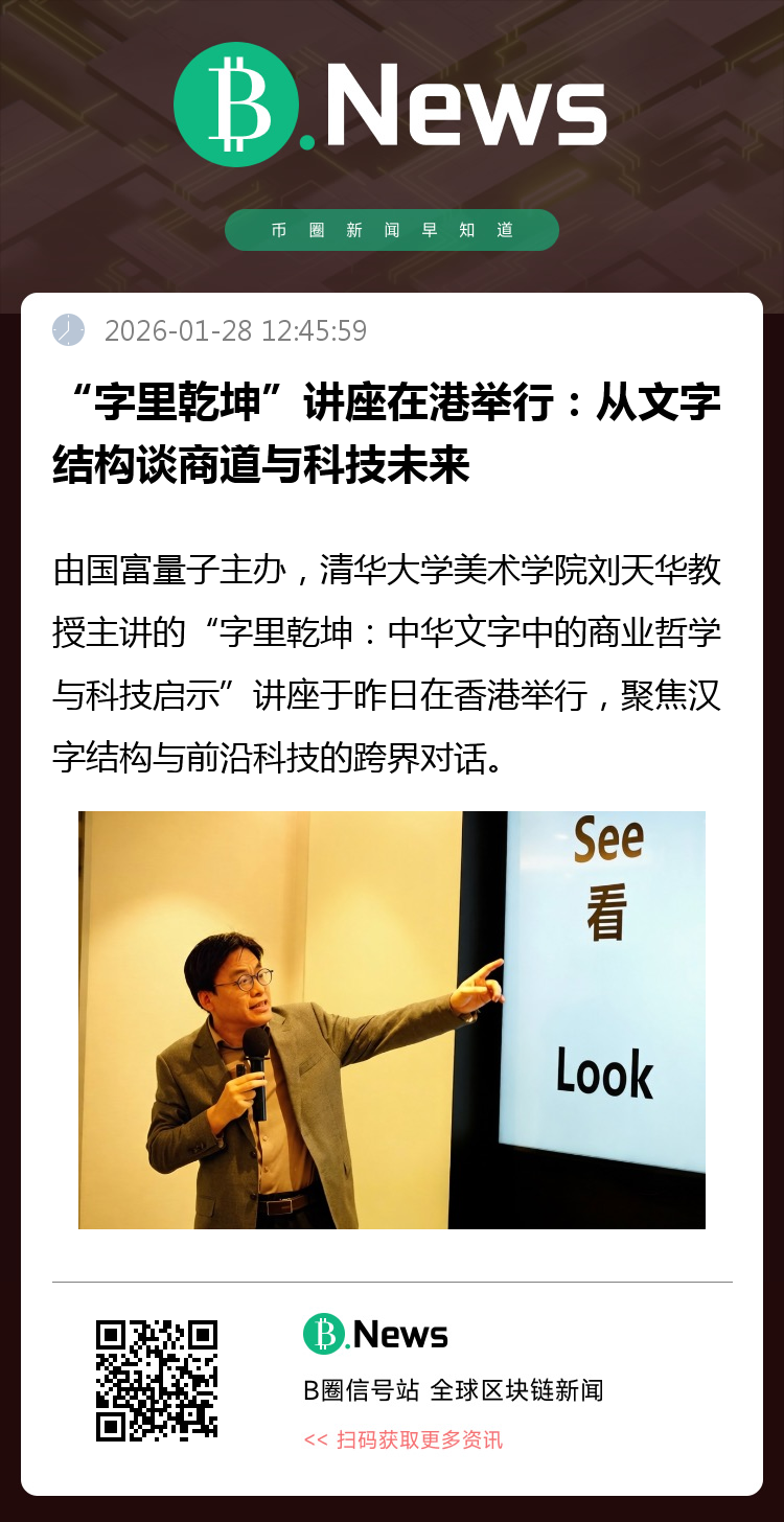 2026年1月27日下午,由国富量子主办,清华大学美术学院刘天华教授主讲的《字里乾坤:中华文字中的商业哲学与科技启示》讲座活动在香港举行。本次讲座以“汉字”为切入点,把传统文字中的结构观、秩序感与当下金融科技放在同一张坐标系里讨论,为香港金融科技圈提供更具人文底色的观察角度。