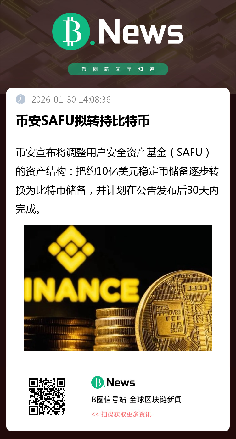 1月30日,币安在一封面向加密社区的公开信中披露上述计划,并表示将根据基金市值波动进行定期再平衡:若因比特币价格波动导致SAFU市值低于 8亿美元,将补充比特币把规模恢复至10亿美元。