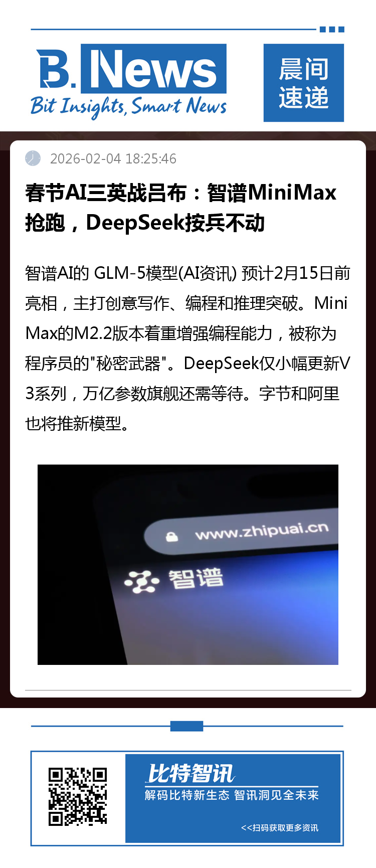 春节红包还没发完,国产大模型已急着抢滩登陆。智谱GLM-5定档2月15日前亮相,主打创意写作、编程与推理能力三角突破;MiniMax M2.2则押注"程序员秘密武器"定位,以230B参数MoE架构专攻端到端开发工作流。两家都选在年前发布,意在用假期流量空档完成用户心智占领。