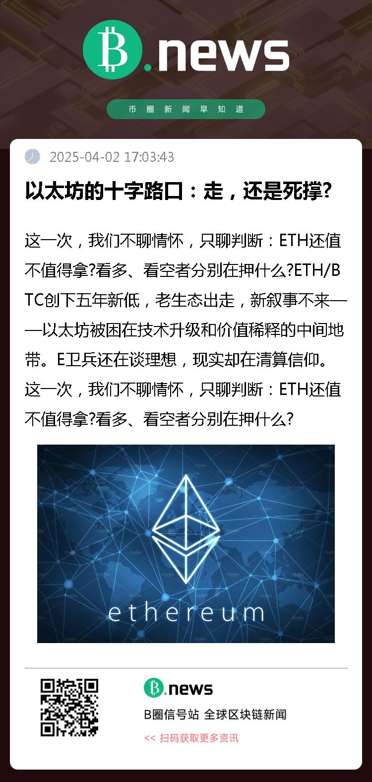 这一次,我们不聊情怀,只聊判断:ETH还值不值得拿?看多、看空者分别在押什么?