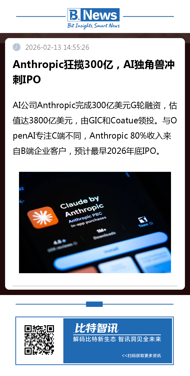 AI公司Anthropic宣布完成300亿美元G轮融资,投后估值达3800亿美元,较上轮183亿美元估值翻倍。此轮融资由新加坡主权财富基金GIC和对冲基金Coatue领投,D.E. Shaw、Founders Fund、阿联酋MGX等联合领投,微软、英伟达此前宣布的投资亦计入本轮。