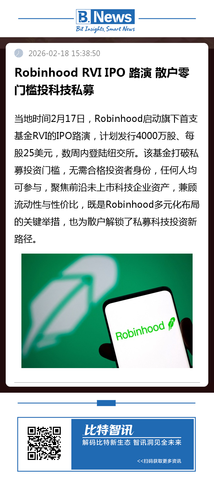 公开数据显示,Robinhood近期业务表现稳健,2025全年营收达45亿美元,同比增长41%,净利润19亿美元创历史新高,用户总资产规模突破3240亿美元,同比增长68%;尽管25Q4营收不及市场预期导致股价短期波动,但公司多元化布局成效显著,预测市场、期货交易、银行业务等已成为重要增长引擎,此次RVI的推出将进一步丰富其产品矩阵,降低对加密交易业务的依赖。截至2月17日美东收盘前,Robinhood股价报75.44美元,近三个月虽累计下跌36.15%,但RVI的IPO计划仍被市场视为其提振长期增长潜力的关键举措。