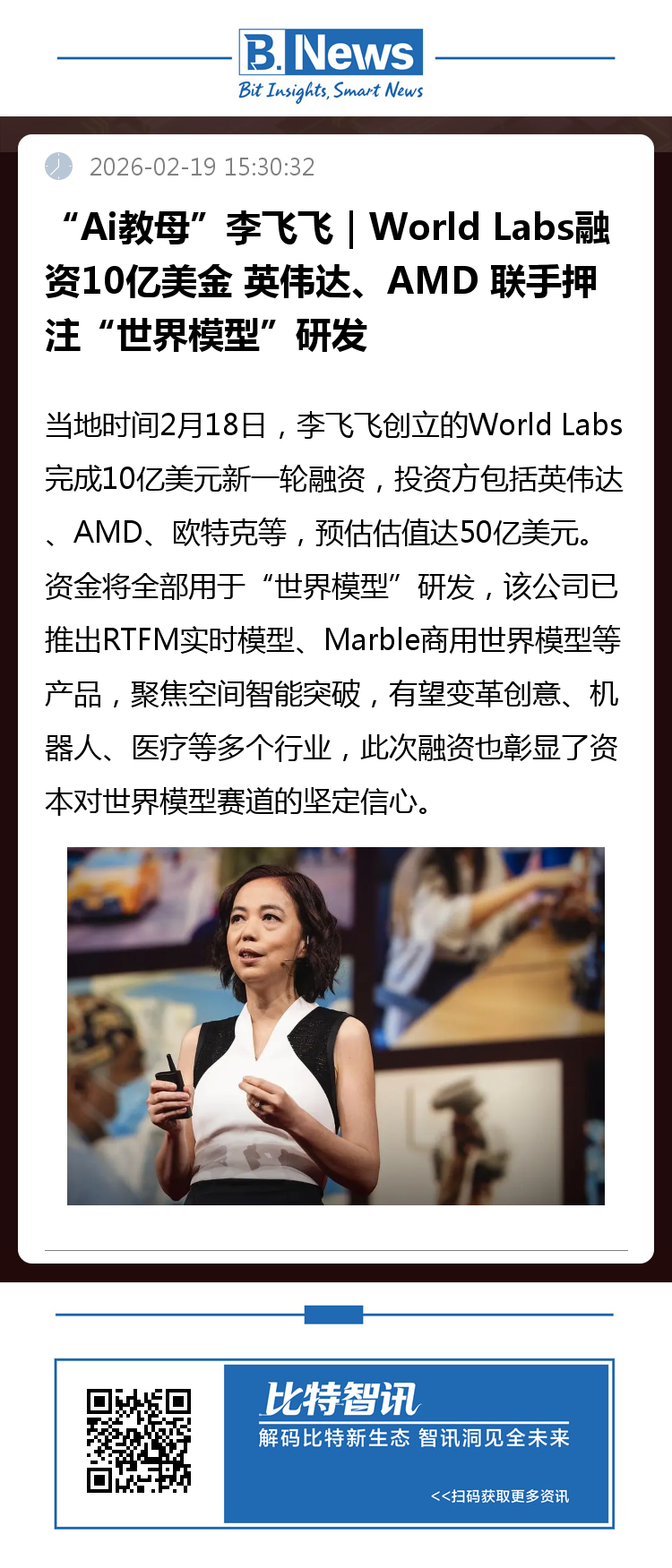 World Labs此次10亿美元融资不仅是其自身发展的重要里程碑,也将带动全球世界模型赛道的升温,加速技术研发与场景落地进程,推动AI从“数字智能”向“物理智能”跨越,这也将成为B.News后续持续关注的前沿科技焦点。