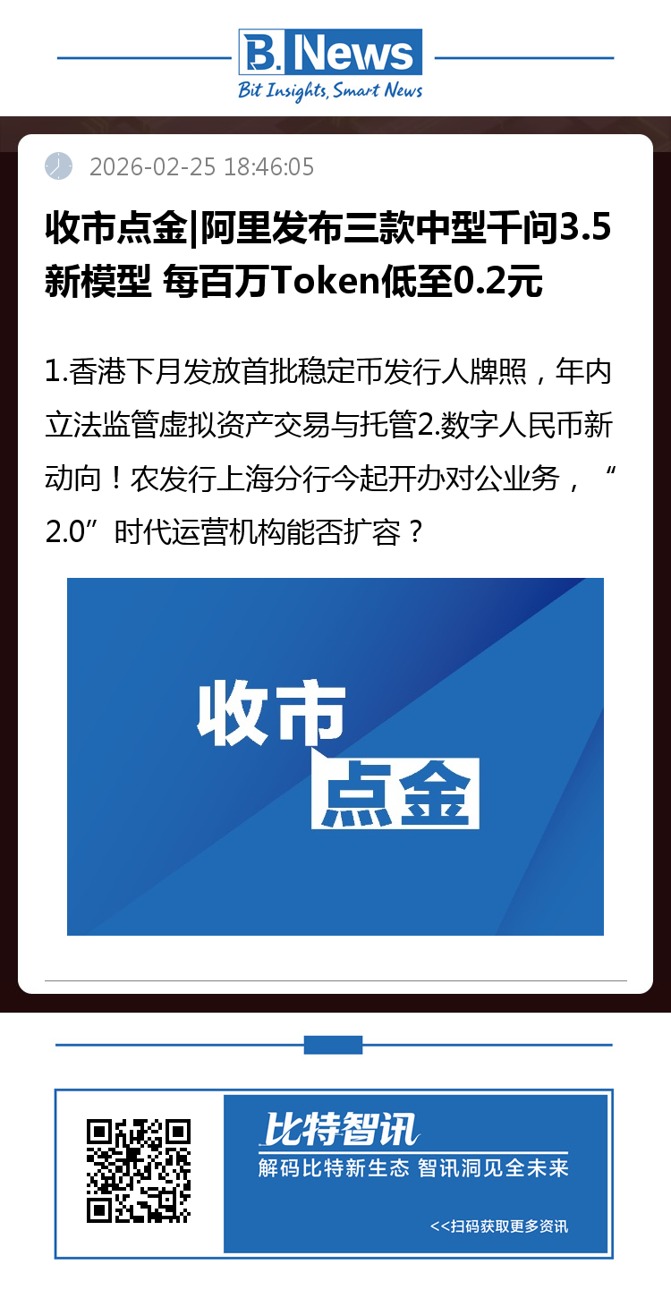 ①中国农业发展银行上海市分行官宣,自今日(2026年2月25日)起面向对公客户开办数字人民币相关业务。