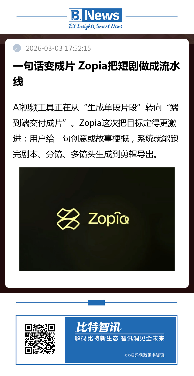 在模型适配上,Zopia强调针对Kling3与Vidu Q3做了优化,目标是更逼真的真人场景与更连贯的故事板输出。同时预告Seedance 2.0将被集成,用来提升动态细节与表现力;交互上主打“边聊边改”,用户可以对话式修改某个镜头、调整剧情节奏或强化风格,而不必推倒重来。
