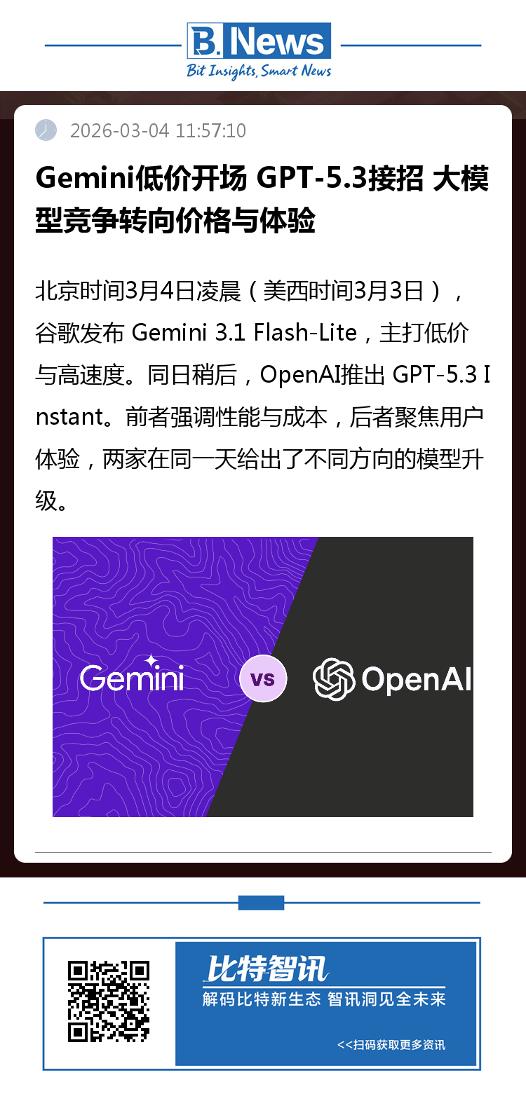 从发布节奏来看,两家公司几乎在同一天推出新模型,但侧重点明显不同。Gemini 3.1 Flash-Lite主打低成本、高速度与基准成绩,更面向开发者的大规模应用场景;GPT-5.3 Instant则将重点放在对话体验、准确性与文本表现上。