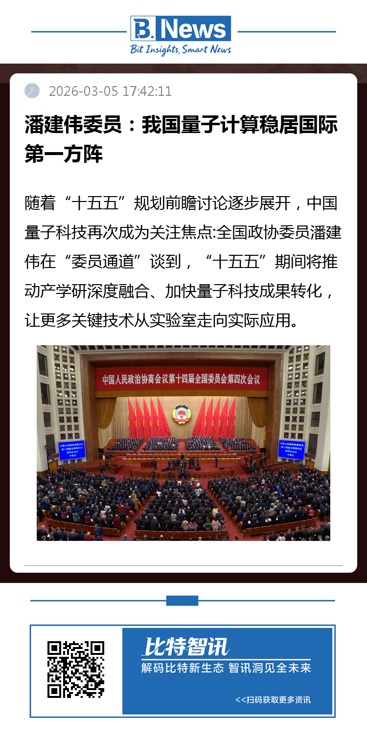 在“十五五”方向上,潘建伟给出的关键词是“持续加强原始创新”“推动产学研深度融合”“加快成果转化”,并把量子科技与“新质生产力培育”“赋能经济社会高质量发展”直接挂钩。