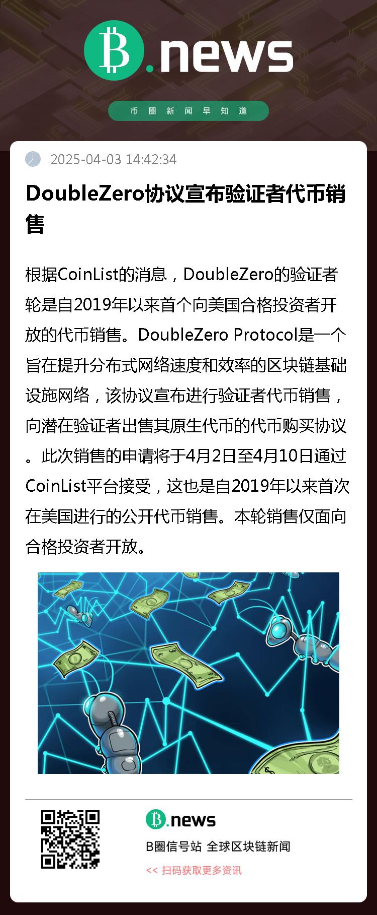 根据CoinList的消息,DoubleZero的验证者轮是自2019年以来首个向美国合格投资者开放的代币销售。