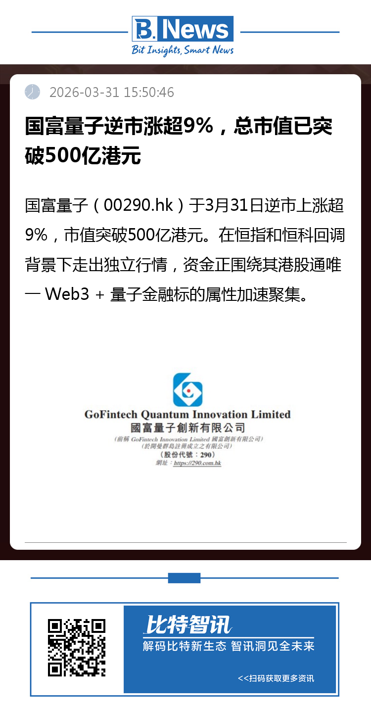 市场层面,南向资金当日净买入40.40亿港元,内资在港股市场继续保持活跃。作为港股通唯一 Web3 + 量子金融标的,国富量子的稀缺属性,正在成为资金关注的重要逻辑之一