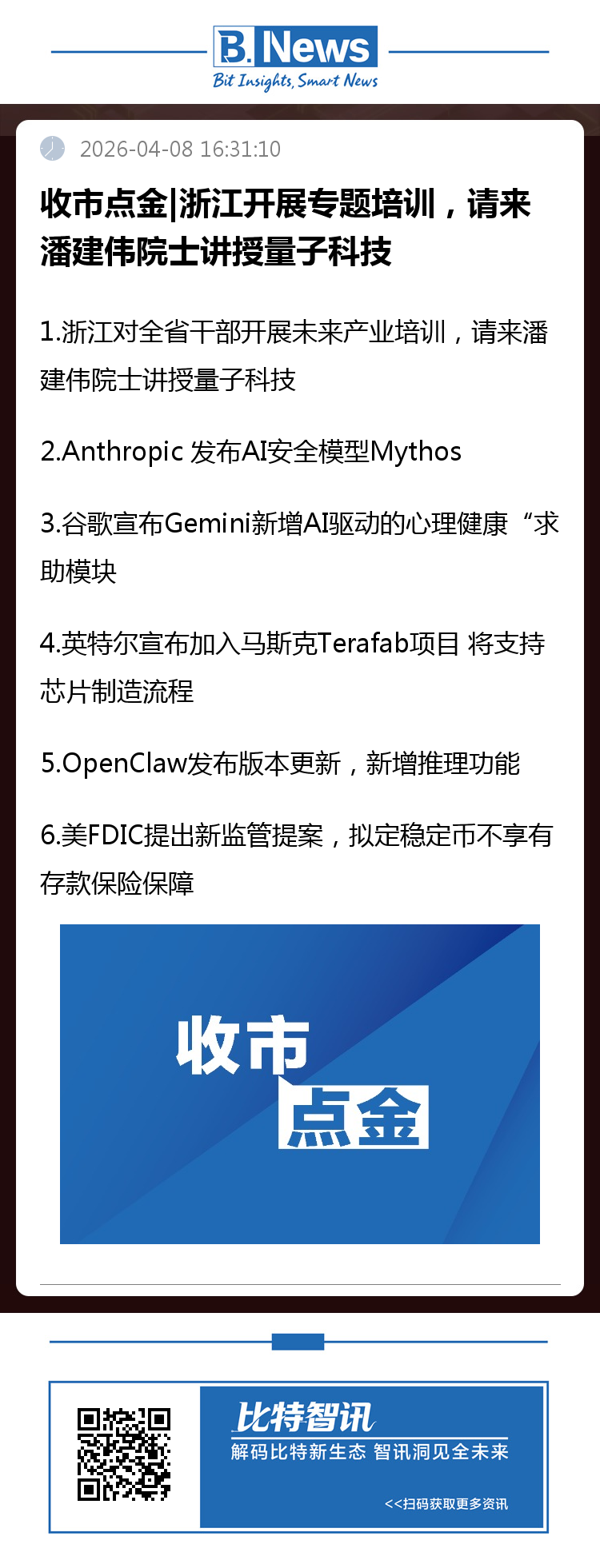 ①英特尔宣布加入马斯克的半导体项目Terafab,帮助每年生产1太瓦计算能力,推动人工智能和机器人技术发展;