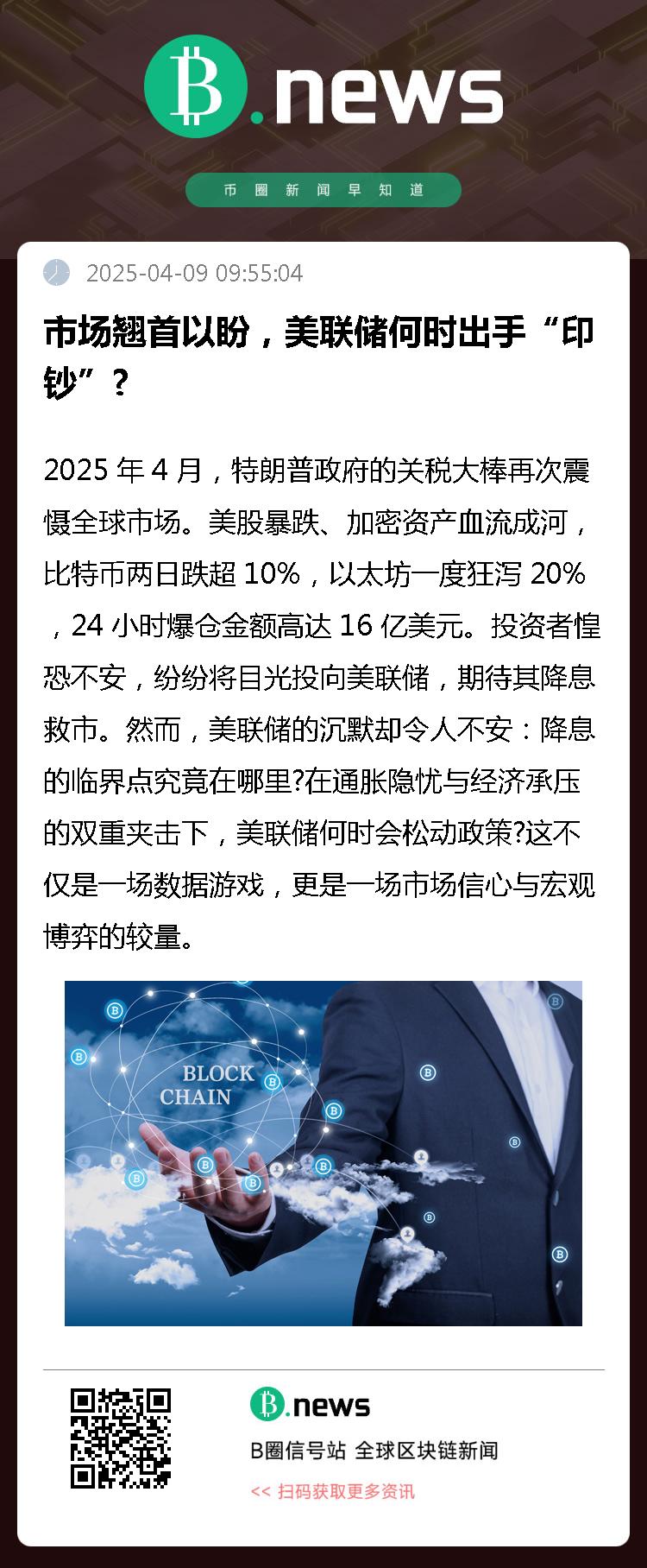 2025 年 4 月,特朗普政府的关税大棒再次震慑全球市场。美股暴跌、加密资产血流成河,比特币两日跌超 10%,以太坊一度狂泻 20%,24 小时爆仓金额高达 16 亿美元。投资者惶恐不安,纷纷将目光投向美联储,期待其降息救市。然而,美联储的沉默却令人不安:降息的临界点究竟在哪里?在通胀隐忧与经济承压的双重夹击下,美联储何时会松动政策?这不仅是一场数据游戏,更是一场市场信心与宏观博弈的较量。